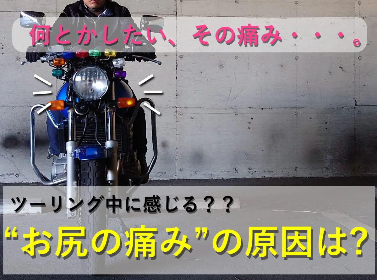 長時間のツーリング中に誰もが経験するお尻の痛み。おそらく、耐えながら運転することに悩むライダーはかなり居るんじゃないでしょうか。ネット上にはプロライダーやバイク屋さんなど専門性の高いブログや動画解説が既に存在しているので真新しい情報ではありませんが、今回は二輪指導員の経験をもとに考察していきます。時間に余裕がある方は、愛車の近くで読んでいただければ幸いです。