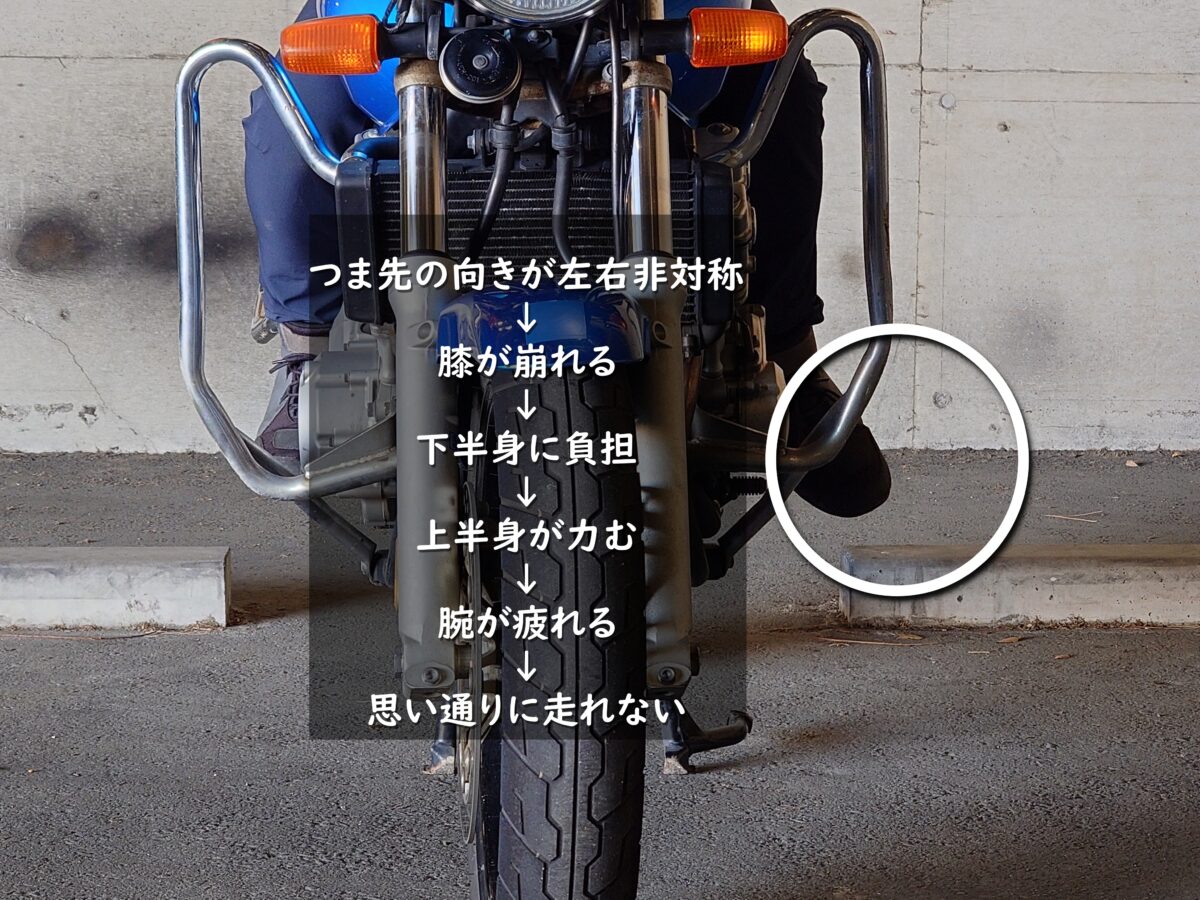 しかし、実際に行うと「足首がつらい」「ニーグリップが難しい」など、最初はしっくりせず違和感だらけです。ライダーそれぞれの考え方やクセ、骨格の特徴や筋力等により慣れるまでどうしても時間がかかります。