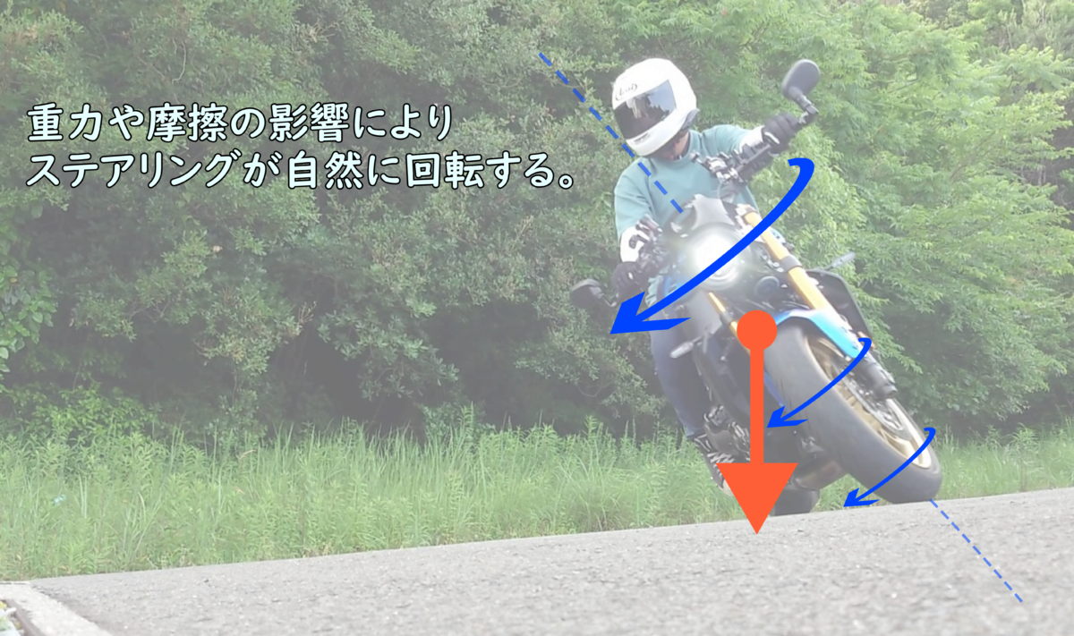 例えば、万物に影響を与えている「重力」は、身近過ぎて意識することを忘れてしまいがち。「セルフステアリング」は、重力の影響があるからこその現象です。この「重力」によりステアリングにどの方向に作用しているかを考えることが、車体挙動に関する理解のきっかけになると思います。