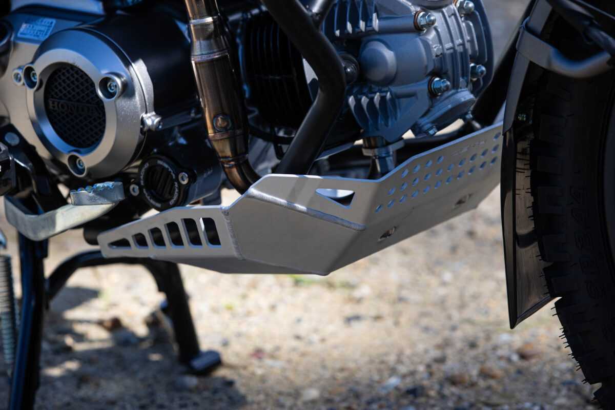 張り出した形状のフレームがエンジンを守り、同時に屈強なスタイルを演出。純正アンダーガードとの併用も可能です。