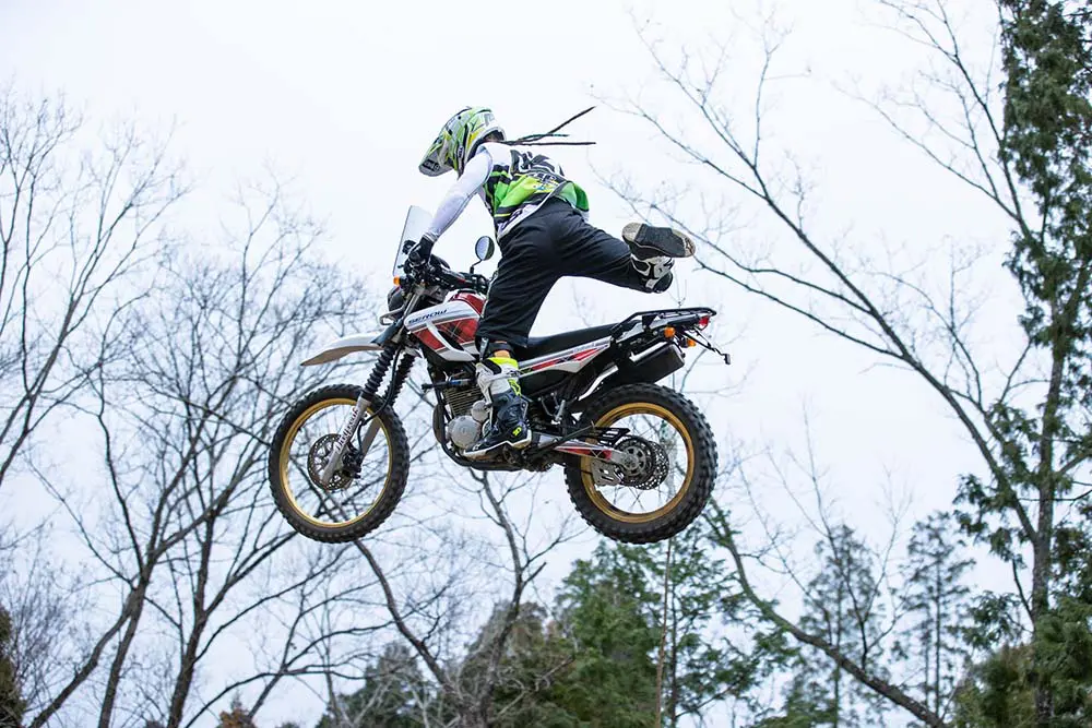 どうしてバイクが空を飛ぶのか、そこまでは誰でもわかると思います。でも、どうしたらうまく着地できるのか……それが、なかなかわかりませんよね。今回はそんなジャンプの基本理論を、FMXの大御所である鈴木“DAICE”大助さんによるセロー250の大ジャンプから学びましょう