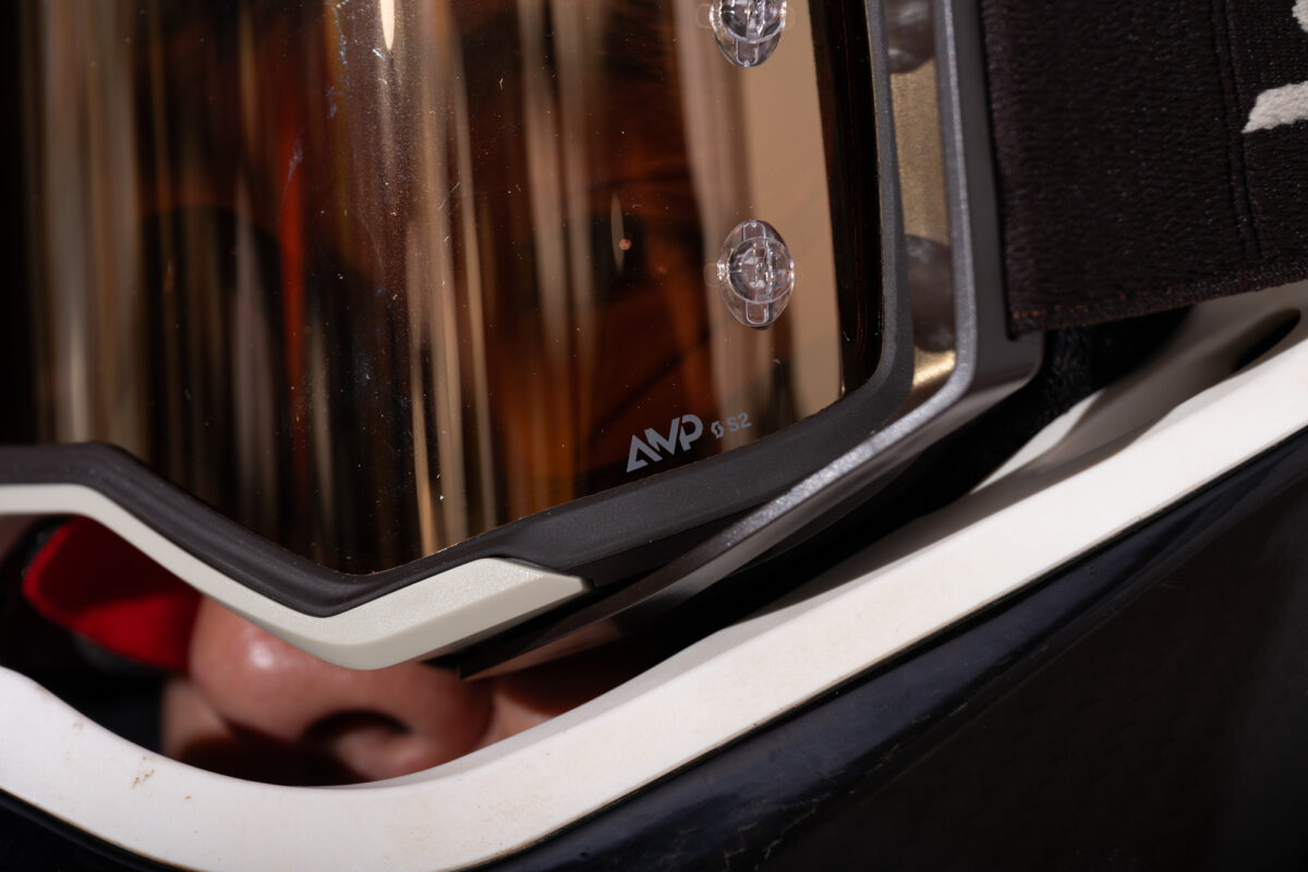 「レンズにはいろいろな種類がありますが、僕自身ミラー系はあまり好みではなく、クリア系のレンズ一択で練習もレースも行っています。今シーズンからAlpinestarsのゴーグルを使用していて、レンズも豊富な種類が揃っているのですが、中でも”アフターバーン”というレンズが気に入っています。このレンズは少し茶色がかっていて、クリアとスモークの中間のような色味です。晴れた日にはクリアレンズは眩しすぎることがあり、スモークレンズだと暗く感じていたのですが、アフターバーンは丁度その中間です。(2025年の)開幕戦のようなマディコンディションでも、砂埃がすごかった第2戦でも視界がクリアで、オールシーズン対応できる理想的なレンズですね」(鴨田)
