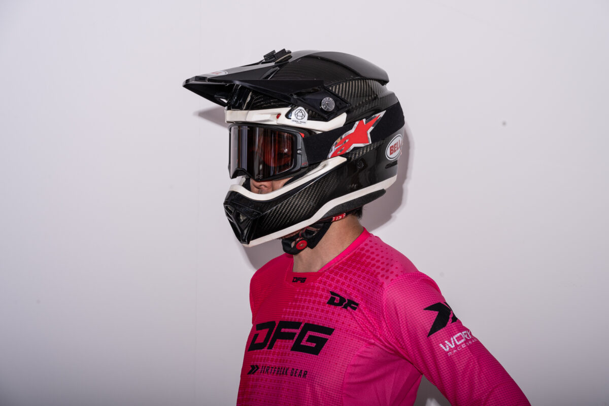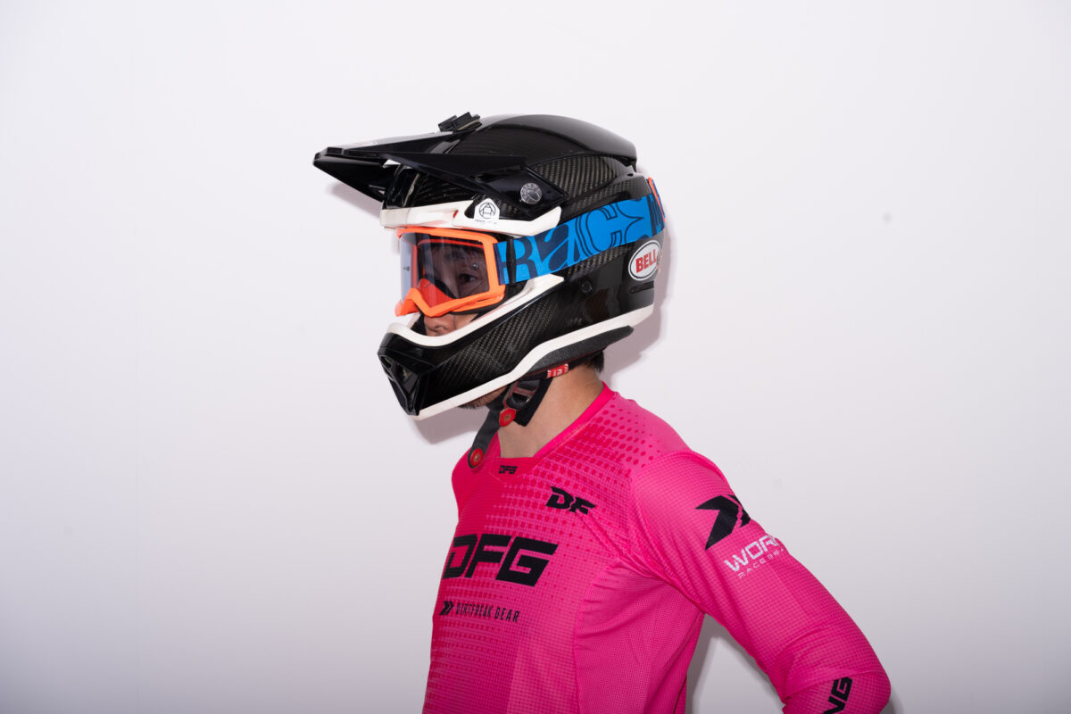 Alpinestars初となるゴーグル「SUPERTECH CORP GOGGLE」。全日本モトクロス選手権で唯一同製品を使用している鴨田選手に、実際の使用感について聞いてみると「フィット感も良く、視界も広い。レンズも脱着しやすくて、ブランドとして初めて発売するとのことですが、ゴーグルとしてのクオリティの高さは他のブランドにも引けを取らないと思います」と評価しています。