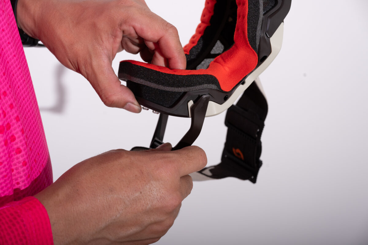 SCOTTのハイエンドモデル「プロスペクト 2.0 AMP ゴーグル」が2025年モデルで改良されています。新たにクイックレンズリリースシステムが導入され、これによって4つのレンズロックピンを瞬時に解除できるようになりました。 レンズの脱着がこれまでよりも簡単になったのは嬉しいポイントです。
