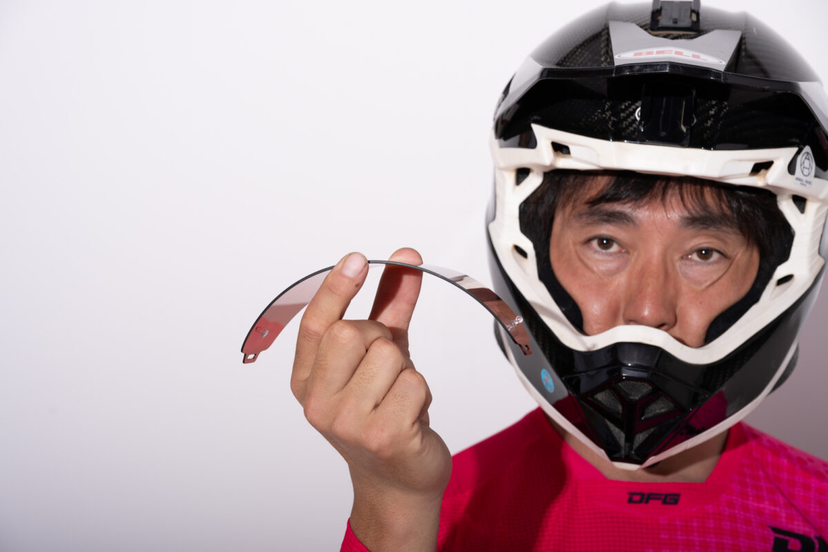 また、マディ対策として主流なロールオフについては「日本ではティアオフを使用していますが、海外ではロールオフが主流で、レースではそれしか使えないため使用していました。ティアオフだと、泥がついていたり風になびいていたりするとフィルムを剥がすために掴む部分がどこにあるのかわからなくなる時があります。その一瞬の迷いによってスピードが落ちてしまい、1~2秒のロスにつながることもあるので、ロールオフのようにリールがあって、引っ張る部分を確実に引けるという点は強みだと思います」と話し、どちらのメリットも感じているとのこと。