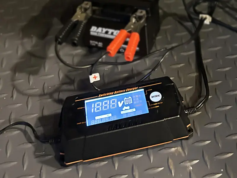 弊社で愛用のデイトナ ディスプレイバッテリーチャージャー。 バッテリーの電圧や充電状態などがディスプレイでわかるので便利です。