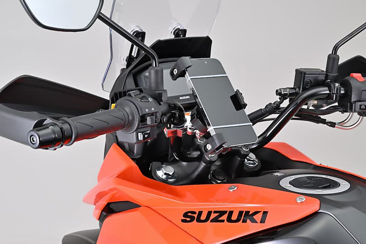 スマホホルダースマホをバイクに設置できるアイテム。スマホをナビとして利用する場合には必須。
