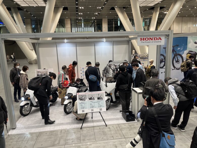 3台のビジネスバイクはすでに販売されているモデルで、共通の交換式バッテリー(Honda Mobile Power Pack)を採用しています。