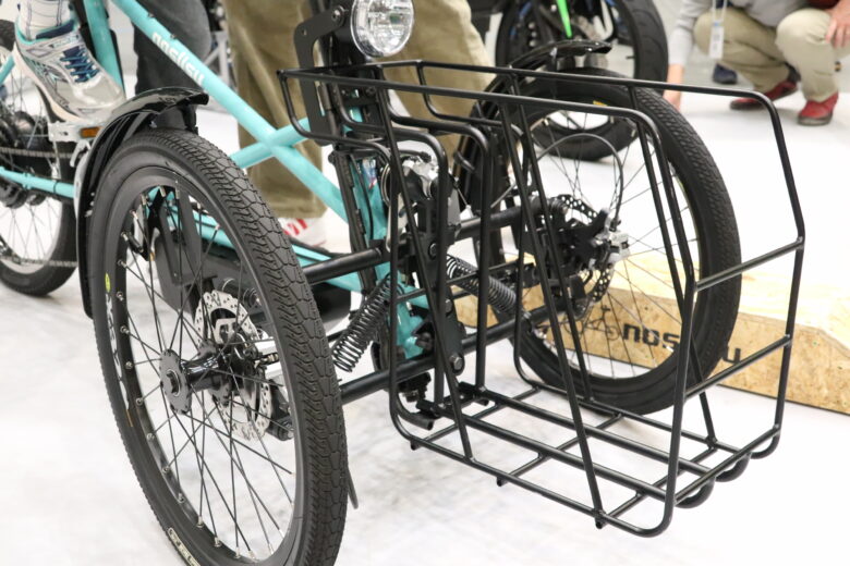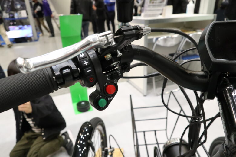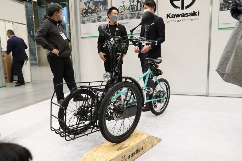 ノスリスはクラウドファンディングで発売した3輪のEVモデル。実はこのノスリスは電動アシストタイプのNB-01(価格:27万円・50台限定)と、普通自動車免許証が必要なミニカー登録となるフル電動タイプNA-01(価格:32万円・50台限定)の2タイプがあります。見た目は3輪のEV自転車ですが、車体の開発はなんとあのH2を開発したエンジニアが担当! ハンドリングやディメンション、さらには走行テストまで妥協することなく製作しています。フロント部分は車体の傾きに合わせてリーンし、どのような路面でも両輪がしっかりと接地し安定して走行できます。またフロントのリーン機構はロックできるので、停車時にスタンドを立てる必要はありません。自転車とバイクの間をつなぐ乗り物として、今後のモータリゼーションに新たな潮流が生まれるかもしれません。事実、会場ではノスリスはEVプロジェクトよりも注目を集め、バイクファン以外の女性や子どもたちも興味津々でした。