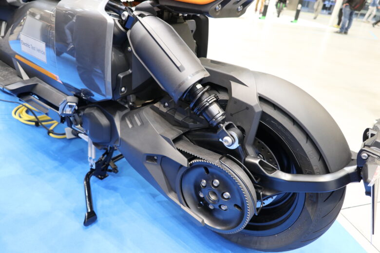 もう一台のC evolutionはすでに警視庁でも採用され、駅伝やマラソンの先導でも活躍しているので目にしたことがあるかもしれません。最高速度は129km/h、航続距離は160km。充電は220V/12Aの普通充電器を使用して、およそ4時間30分で100%の充電が完了、約3時間50分では80%の充電が完了します。4つの走行モードを備え、それによって加速と回生ブレーキの効きが変わります。回生ブレーキが最も効くモードだと、アクセル操作のみで加速から減速、停止まででき、EVバイクの楽しさを満喫できます。加速力も抜群で、アクセルをひねるだけでマシンは甲高いモーター音を唸らせ、0〜50km/hわずか2.8秒という加速を堪能できます。 筆者もこのC evolutionに試乗したことがありますが、高いスタビリティ、加速性能、コーナリング性能、回生ブレーキによる制動と全てが高い次元でまとまっており、スポーティな走りを楽しめる全く新しいジャンルのバイクでした。ガソリンエンジンのバイクから乗り換えても違和感がないので、試乗する機会があったらぜひ体感してほしい車両のひとつです。
