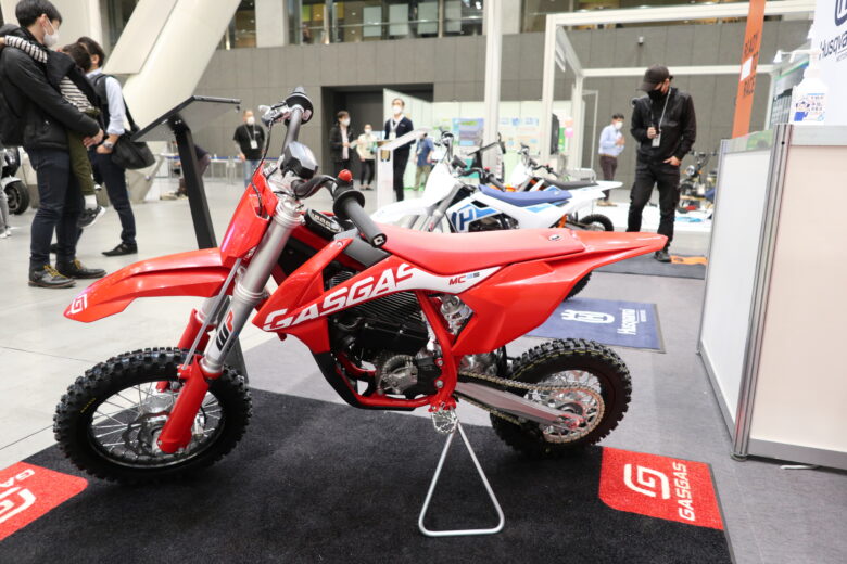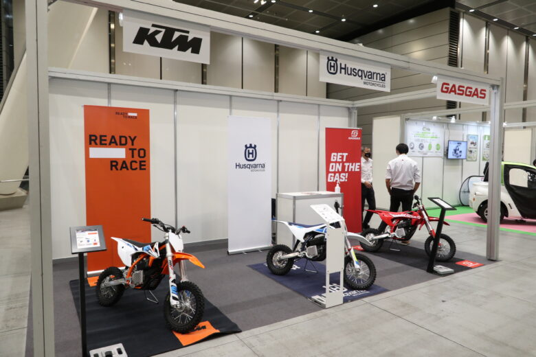 KTM、Husqvarna、GASGASの3メーカーが同じブースで展示していたキッズ用のEVバイク。車名がそれぞれ違い外装色も違いますが、中身は同じ! これはKTMグループの傘下にHusqvarna、GASGASが入っているから。車両はすでに販売されており、全日本モトクロス選手権シリーズの最終戦では、全クラスの中で初のEVバイクとして参戦。チームヒラタ自動車@ハスクバーナ所属の小学1年生の矢木杏奈ちゃんがEE 5で出場しホールショット(レースでスタートし第一コーナーにトップで進入すること)を決め、3位の成績を残しました。なお、来年は全戦にEE 5で参戦するそうなので、マシンの耐久性も証明してくれることになりそうですね! さてこのSX-E5(EE 5、MC E5)は出力設定を6段階で変えられます。乗りはじめたばかりのお子様からレースに参戦するエキスパートのキッズライダーまで対応可能。各地で開催されるオフロードイベントなどで試乗できたりするので、気になる人はKTMジャパンのイベントページでチェックしてみてくださいね。