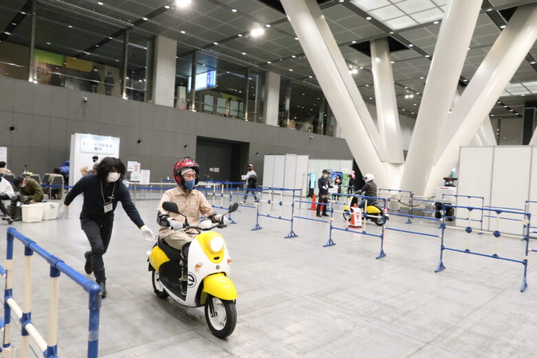テレビ東京の人気番組「出川哲朗の充電させてもらえませんか?」でもおなじみのE vino。会場ではEVバイク試乗も行なわれ実際に乗ることができました。EVバイクのスクーターの原付クラスは、国内外の大小さまざまなメーカーからモデルが発表されている最も競争が激しいクラスでもあります。そのEVスクーターの中でも同車両はアクセルのオン・オフでギクシャクしない自然なライディングを実現しており、出力を制御する高い技術力はバイクのトップメーカーだからこそと言えるでしょう。