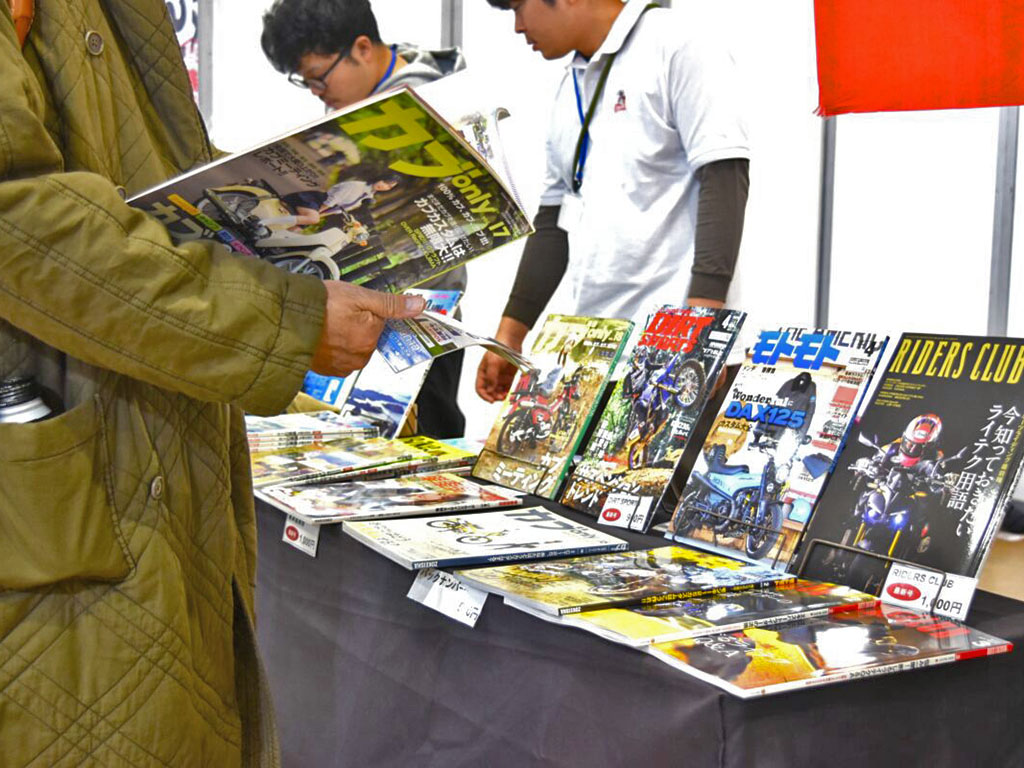 めでたく免許が取得できたら、次はバイク選びです。各ブースには国内外のバイクが勢ぞろい。話題の新車から中古車まで数多く展示・販売しています。ほとんどのバイクにまたがる事ができるので、自分に合ったマシンを見つけて下さい。