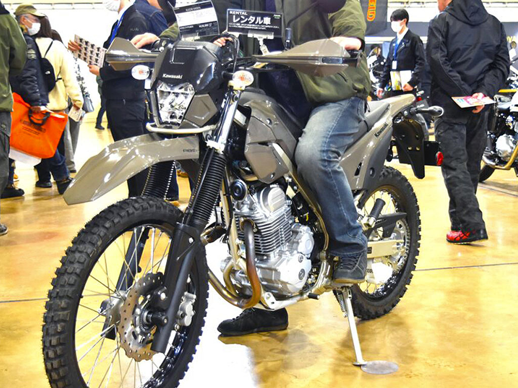 今年はカワサキのKLX230シェルパが注目されていました。ヤマハ・セローが販売終了になった現在、国内メーカー唯一のトレッキングマシンです。セカンドバイクとして購入を考えている人が多いようで、次々と足つきを確認していました。