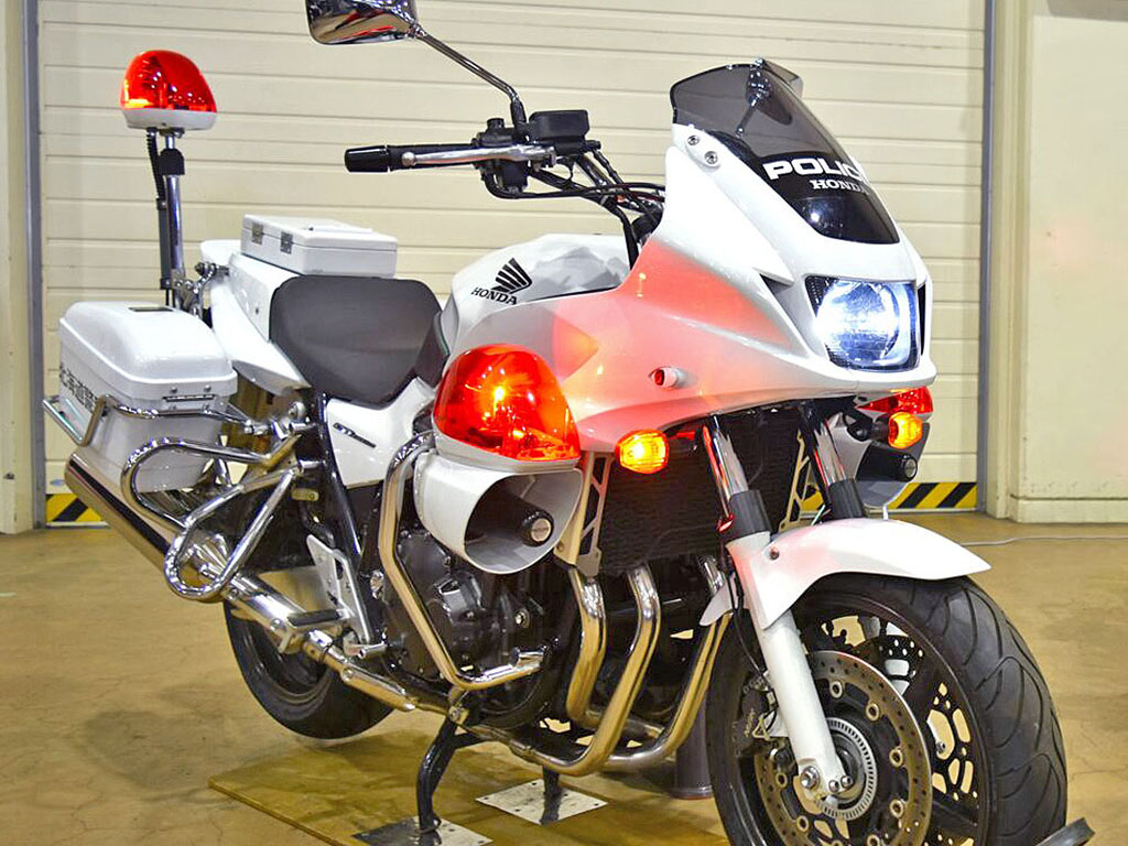 今年は白バイも展示されていました。サイレンを鳴らされて後ろにピッタリ付けられた日には「オワタ〜」と肩を落としますよね。ホンダ・CB1300SFがベースで、エンジンや足回りなど基本性能はスタンダードと同じだそう。夫婦で来ていた奥さんが旦那さんに「追いかけられたら前しか見れないんだから、後ろもじっくり見ておきな!」と言っていました。