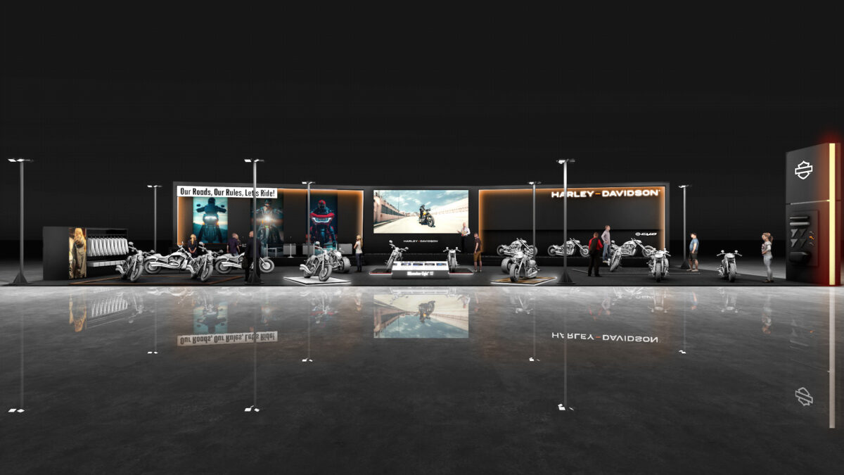 *2 ステージ上での展示のみとなるCVO™各モデルを除き、ブース内の展示全モデルに跨ることが可能です