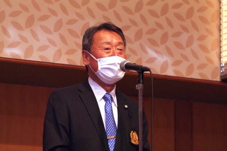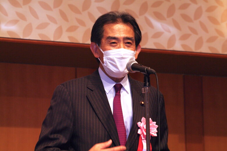 授賞式では能楽師の大倉正之助氏による太鼓の演奏からスタート。自由民主党オートバイ議連会長・逢沢一郎議員(写真左)の祝辞や、一般社団法人日本二輪車文化協会・吉田純一会長(写真右)による挨拶が行なわれ、さらには選考員も努めているファッションデザイナーの菊池武夫氏はビデオレターで開催の祝辞を述べられました。
