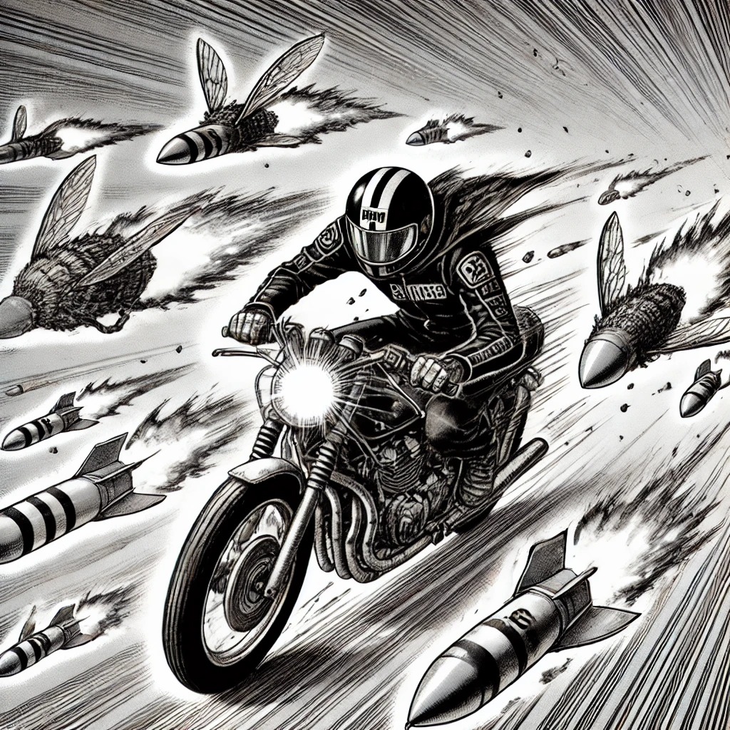 ミサイル系の虫を華麗に避ける神ライダーがいるって噂あるんだよね。こういう人って、バイクと一体化してるから、走りながらも「虫が来る位置」を瞬時に見極めて、スムーズに虫を避けて走れるんだって!
