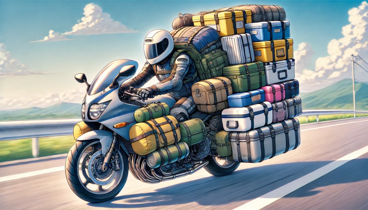 バイク乗りは、時々、信じられないほど大量の荷物をバイクに積んでしまうときがある。もはや「バイク」ではなく「軽トラック」のようなビジュアルになっているバイク乗りや、縦に積み重ねた結果「避雷針」のようなビジュアルになっているバイク乗りも存在している。「どうしてそんなに荷物が必要なの?」と不思議に思う方もいるかもしれない。この記事では、その理由と積載のコツについて考察する。