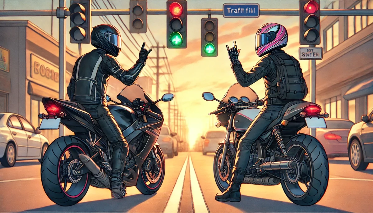 信号待ちでバイク乗りが互いを意識し合うことは、多くの要因が複合した結果として現れます。共通の好みによる親近感、安全性の確認、そして独自のコミュニケーションスタイルが、それぞれのバイク乗りをつなぐ瞬間です。信号待ちという短い時間の中でも、バイク乗り同士は、無言の交流を通して、仲間意識や共感を深め、さらに安全運転への意識を高め合い、バイクライフの喜びを共有していると言えるでしょう。