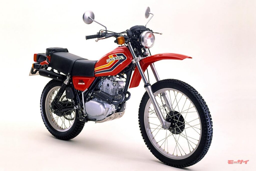 1978 XL250S:既存のSL250SやXL250とは、別次元の運動性能を獲得したトレールバイク。ただし、ボア×ストローク:74×57.8mm、最高出力:22psという数値は不変