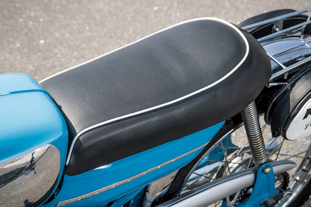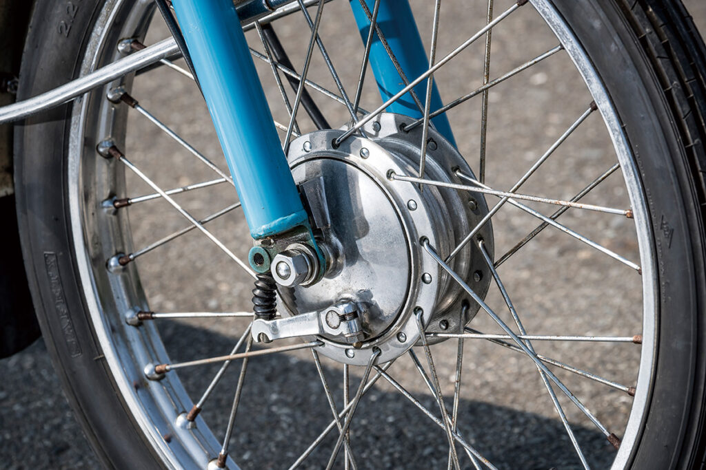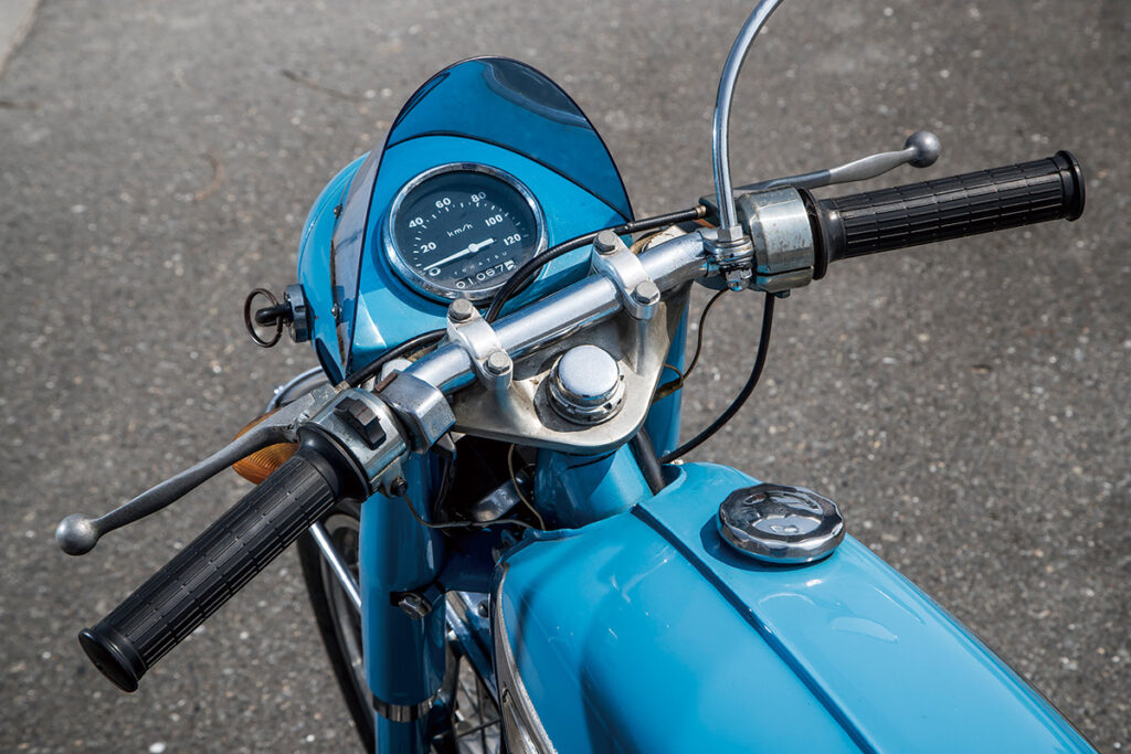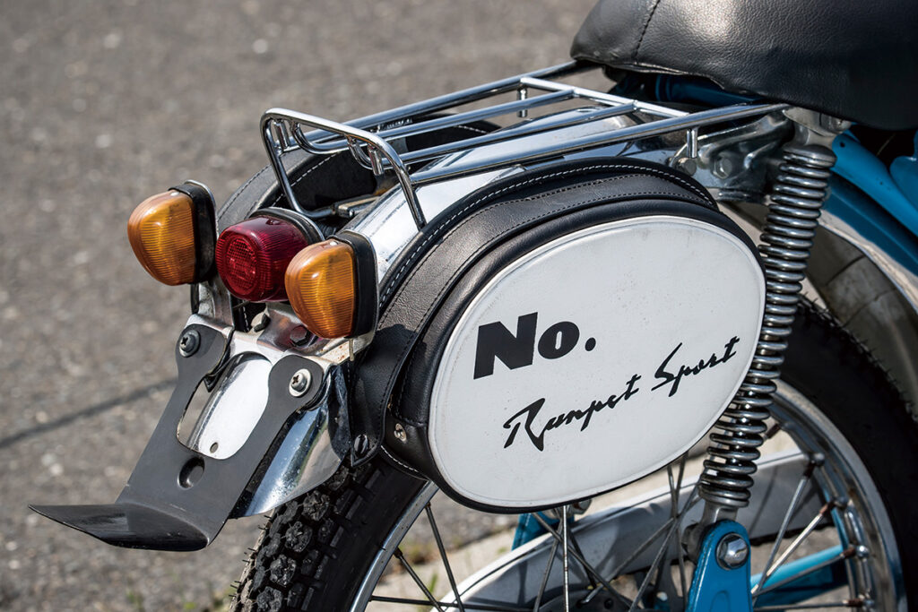’60年に登場したランペットは、原付スポーツ黎明期を代表する1台と言っていいだろう。当初のランペットCAは明確にスポーツをうたったものではなく、アップ気味のハンドルバーや深めの前後フェンダーなど、どちらかと言うとツーリング車的装備が与えられていた。