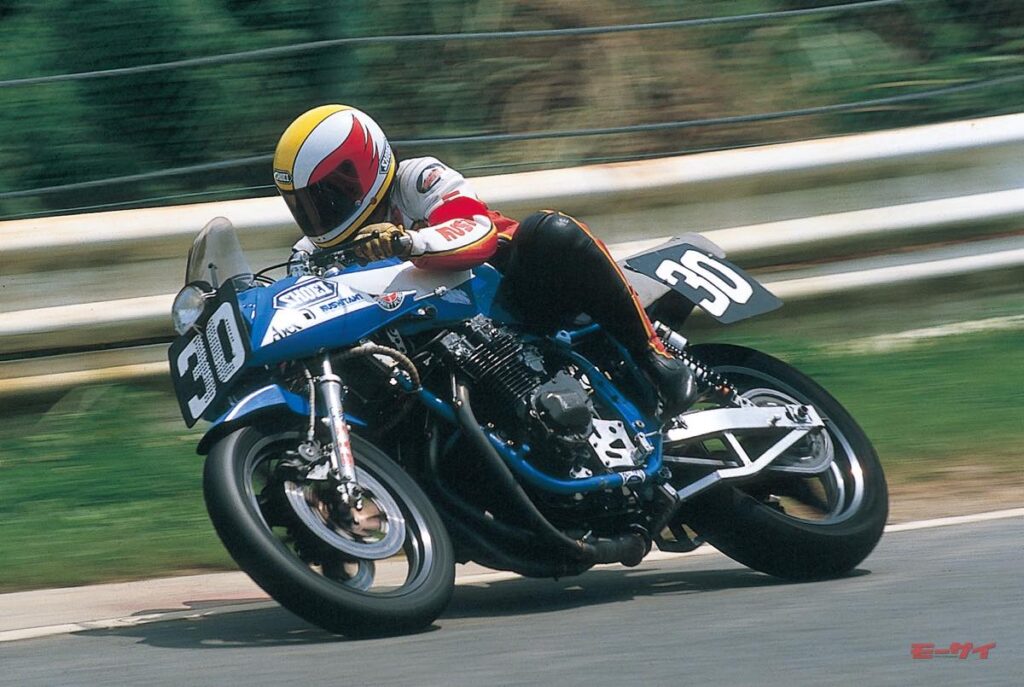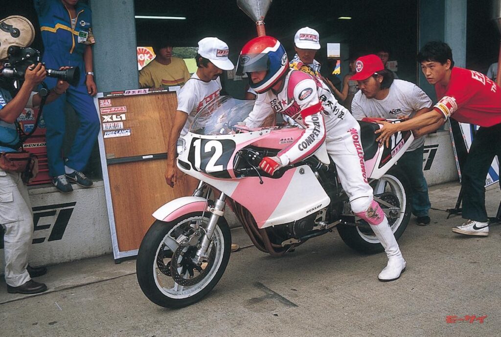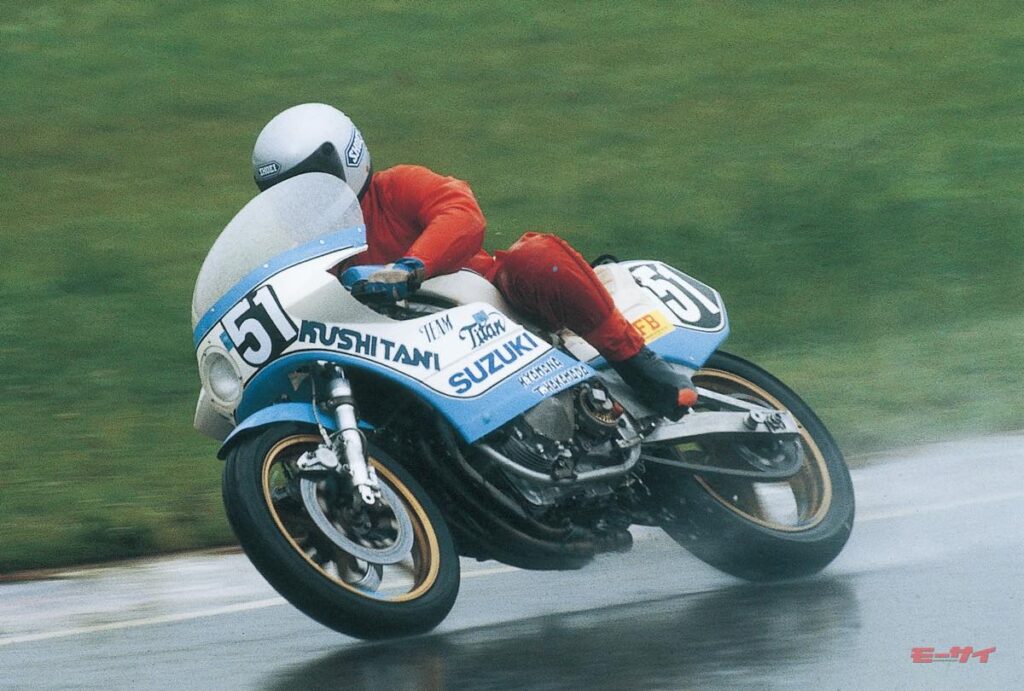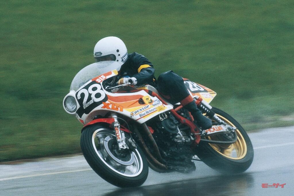 こうした状況下、頭角を現したのが8人の日本人ライダーである。ブルーヘルメットに所属する飯嶋茂男/萩原紳治と伊藤裕之/吉村俊宏(ホンダCB900F)、チームタイタンの山名 久/袴田利明(スズキGSX750)、モトスポーツの和歌山利宏/阿部三吉(ヤマハXJ750)は、いずれもメーカーの開発ライダーで(阿部は同年春に退社し、モトスポーツを立ち上げていたが)、鈴鹿サーキットを知り尽くしているだけではなく、悪天候下でのマシンコントロールにも長けていた。もちろん、彼らが駆った車両の性能は一線級のファクトリーマシンと比較すればやや劣っていたが、スクリーンとシールドに当たる雨粒の強さから次のコーナーの濡れ具合を予測し、刻々と変化するタイヤの接地感を読み取り、厳しい状況下でスムーズな走りを披露した8人の開発ライダーは、台風がもたらした豪雨を味方につけたのだ。