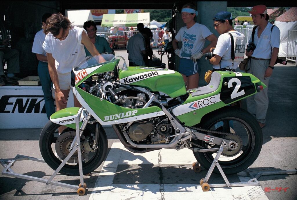 ■前年までと比較して格段に洗練されたカワサキファクトリーのKR1000。フレームはついにアルミ化され、フロントには16インチホイ ール、リヤにはボトムリンク式モノショックを採用。#2カワサキフランスは決勝を2位でフィニッシュ。
