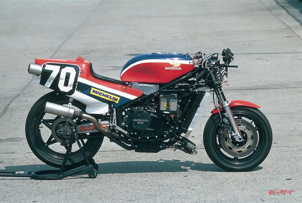 ■同車はファクトリーマシンではなく、500万円で市販されたRS850R。 83年は様子見的な姿勢だったホンダファクトリーだが、以後は750ccとなったV4マシンが圧倒的な速さを発揮。84年の表彰台独占を皮切りに、ホンダV4は10度も鈴鹿8耐を制することとなった。