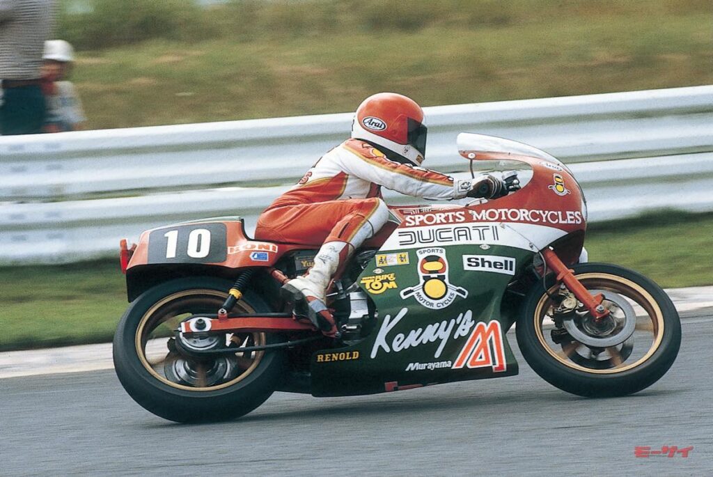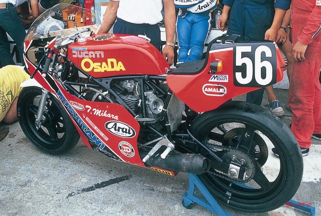 ■チームクシタニからエントリーしたドゥカティは、市販モデルの500/600SLや本社製レーシングパンタとは異なるオリジナルフレームを採用していた。
