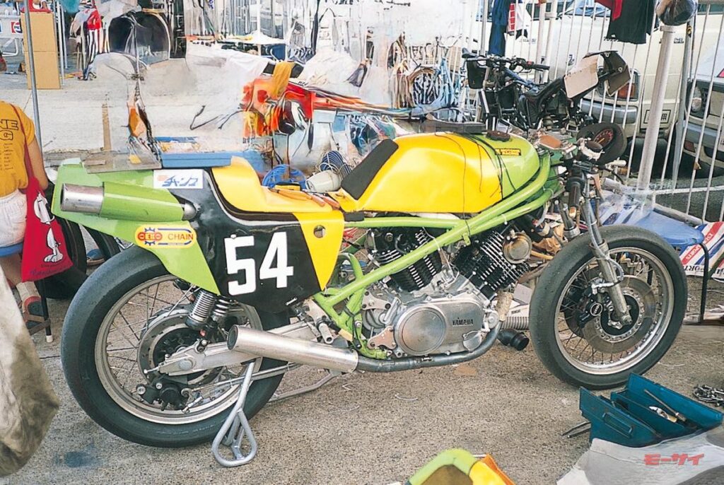 ■モトスポーツからエントリーした#48のXJ750は、実質的にはヤマハのファクトリーマシンと言える構成で、随所にスペシャルパーツを投入。駆動はシャフトからチェーンに変更されていた(79年のXS1100はシャフトのままで走った)。