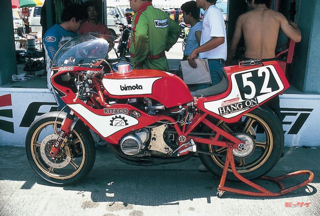 ■ほぼオリジナルのKB-1を走らせたのは、当時のビモータの輸入代理店だったオートショップフクイ。決勝は49周でリタイアした。