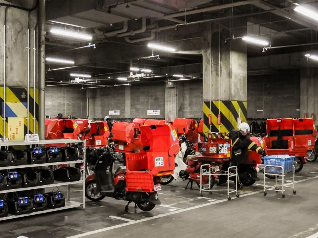 さらに、何といっても電動バイクは排気ガスを排出しないため、駐車スペースが屋内にある郵便局で働く郵便局員たちの快適性向上にも寄与しているとのことでした。