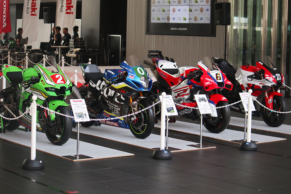 国内外のレースシーンで活躍する国内バイクメーカー4社のレーシングマシンが勢揃い