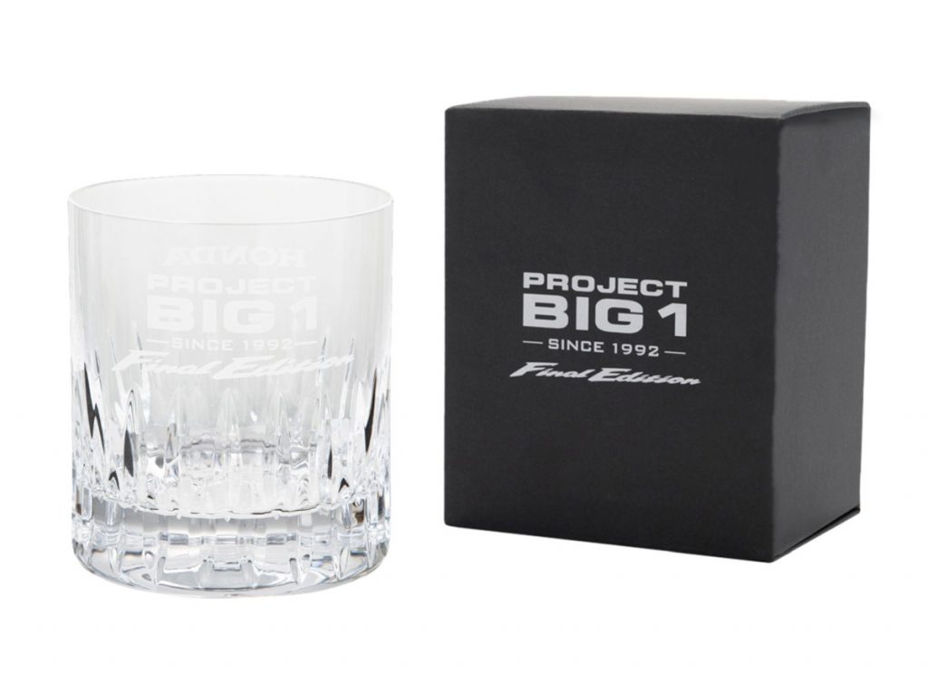 「CB1300」シリーズなどの開発思想「PROJECT BIG-1」を冠した、高級感あふれるロックグラス。スロバキア製のクリスタルガラスを採用しており、底面には真上から覗き込んだときだけ現れるウイングマークが施されています。