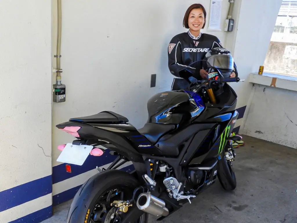 東京都から参加していたこちらの30代J・Hさんは、今回2回目の参加とのこと。バイクに乗り始めたのは20年前のことで、高校生の時に彼氏の後ろに乗せてもらったことをきっかけに、自分で運転してみたいと思ったそうです。普段は公道走行よりもミニバイク仲間に誘われてサーキットへ出向くことが多いとのことで、サーキット走行を中心としたバイクライフを謳歌されていました。
