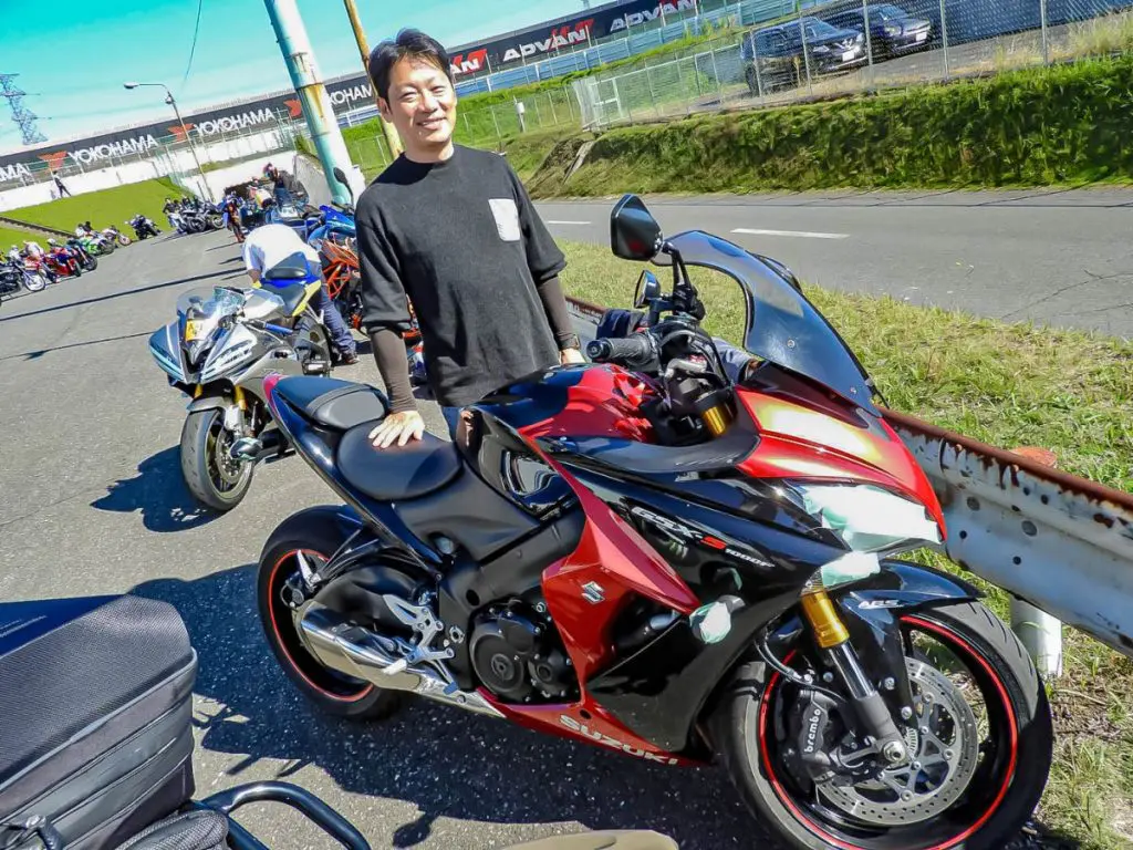 普段は東京から姫路あたりまで日帰りでツーリングしてしまうほどの強者ライダーらしいのですが、そんなツーリング好きがなぜサーキット走行会に参加されたのかについて尋ねたところ、職場の上司による勧誘で参加されたそうです。青空の下、バイク仲間と一緒に準備する姿がとても楽しそうに映りました。