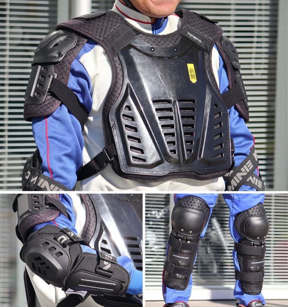 胸部、腕、足を保護するプロテクターは、ほとんどの教習所で貸し出されています。もちろんお持ちのプロテクターがあれば使用できますが、その場合はプロテクターの安全規格を示すJMCA推奨ステッカーが貼られた製品をご準備ください。
