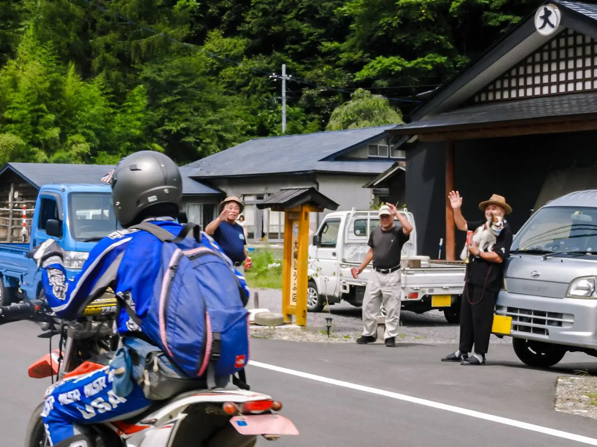 次のセクションへ向かう道中、ライダーたちに手を振って懸命に応援する地元住民の一人に呼び止められました。