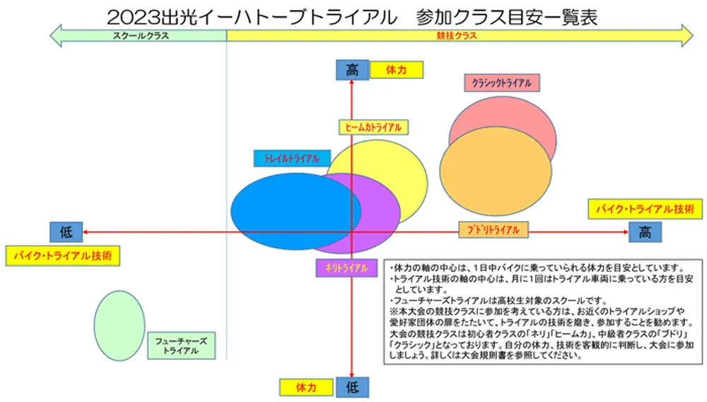 そのほかにも5年前から新設されたクラスとして、トレールバイクでも参加できるイーハトーブ・トレイルトライアル、トライアル競技に参加できる技量のあるイーハトーブ・スポーツトライアルがあります。
