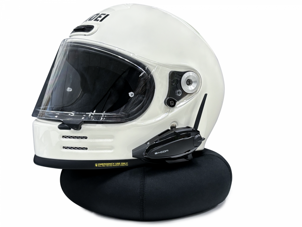 「SHOEIヘルメットと弊社とで取り組んだ試みのひとつが『SX1』です。インカムの装着率が高まり、インカムを取り入れたヘルメットが登場し始めたちょうどその頃、SHOEIから開発協力の相談がありました。『国内のバイクユーザーからの要望の多さ』から生まれた取り組みだとお聞きしました。SHOEIヘルメットのインカム専用装着機構『SHOEI COMLINK』に対応できる製品開発を手がけ、生まれたのが『B+COM SX1』なのです。『NEOTEC 3』『GT-Air 3』『J-Cruise 3』というSHOEIヘルメットの3モデルに装着可能です。