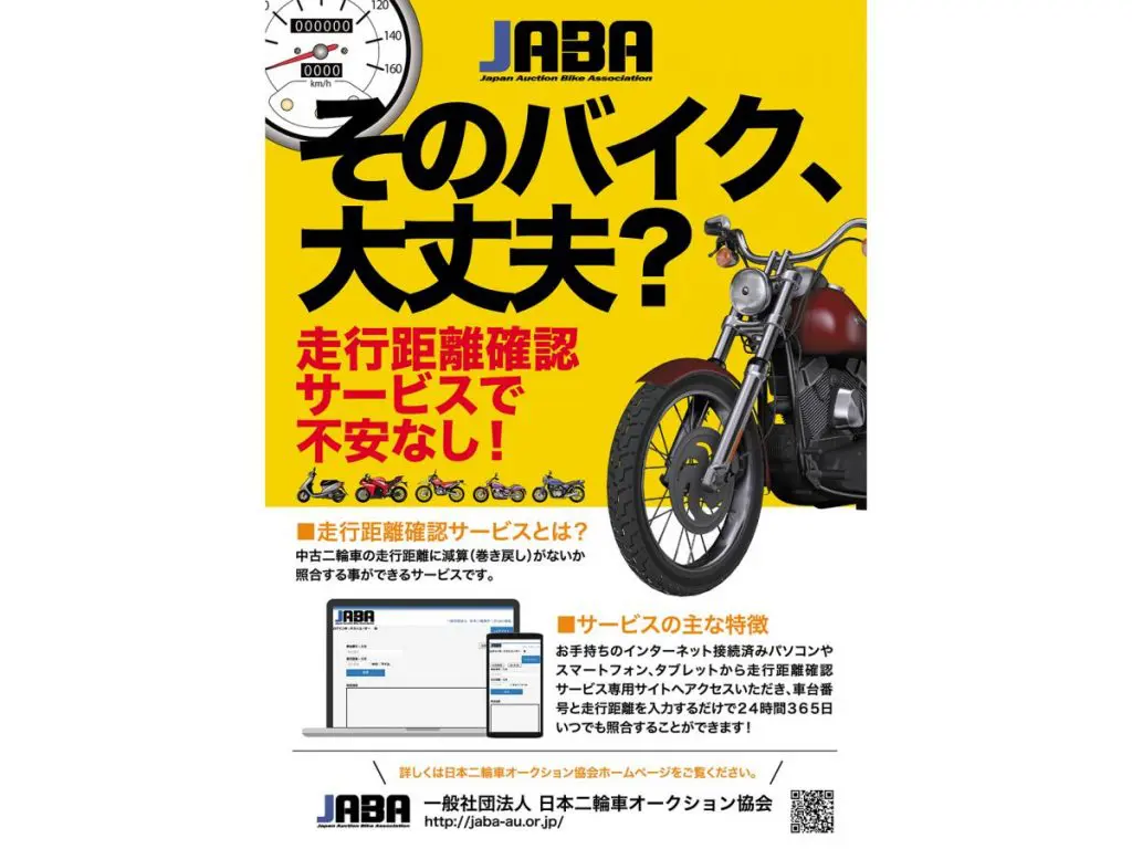 同サービスはJABA会員のオークション会場で流通した履歴のあるバイクが対象であり、JABA加盟のオークション会場会員のバイクショップで、利用要件を満たしていれば、24時間365日いつでも走行距離確認サービス専用サイトから照合することができます。