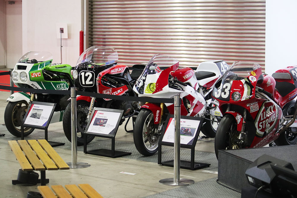 1980・1990年代のコーナーでは、当時活躍した4メーカーのワークスレーサーが展示されていました。2スト時代の懐かしいグランプリマシンが一堂に会するという、貴重な機会となりました。