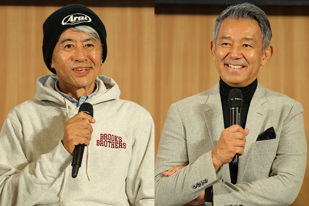 MotoGP中継の解説も務める辻本 聡氏(以下、辻本氏)と宮城 光氏(以下、宮城氏)がレジェンドライダーとして登場。辻本氏の鈴鹿8耐初参戦は1982年、宮城氏は1984年と、同イベントにふさわしいお二人から、実際に鈴鹿8耐を走った経験者ならではの質問や逸話が飛び出しました。