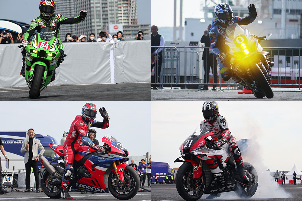 今年46回目の開催となった「FIM世界耐久選手権 “コカ・コーラ”鈴鹿8時間耐久ロードレース」(以下、鈴鹿8耐)。その迫力と魅力を伝えるべく、Performance Zone(東棟屋外臨時駐車場)にて「国内バイク4メーカーコラボ!鈴鹿8耐パフォーマンス」が実施されました。