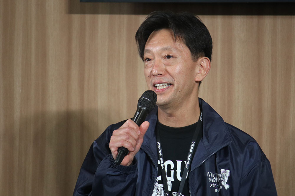 トークショー前半では、「メグロ・キャノンボール那須烏山実行委員会」委員長の山田 佳之氏が挨拶を行いました。