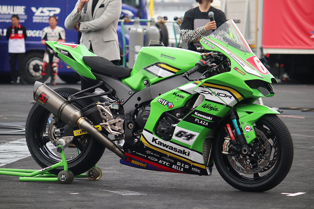 「Kawasaki Plaza Racing Teamは、より市販車に近い状態のマシンで争うSSTクラスに参戦しました。結果は総合30位、クラス11位です。クイックチェンジャーが使えないので、タイヤを交換する回数を減らすとか、いろいろ工夫できる余地があるのがこのクラスの面白さだと思っています。それに、『市販車に近い状態でもここまで戦えるんだぞ』ってアピールできるのも楽しいですね」(岩戸選手)