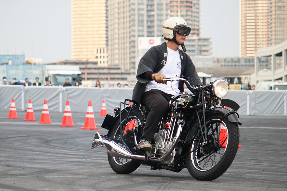 同日16時には、旧メグロ、MEGURO K3、「MEGURO S1」など40台あまりのメグロによるパレードラン「東京ショーラン」がPerformance Zone(東棟屋外臨時駐車場)にて開催されました。これほどの台数のメグロが威風堂々とパレードするさまに、まるでタイムスリップしたかのような感覚に包まれました。