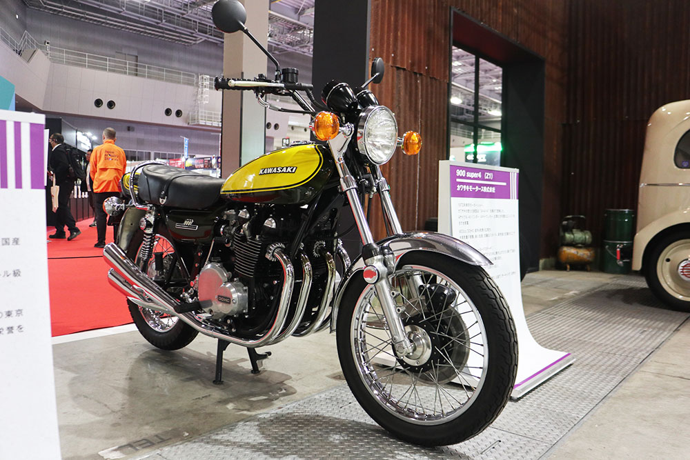 日本では1972年開催の「東京モーターショー」で初お披露目となったカワサキ「900Super4」。型式名である“Z1”(ゼットワン)を知る方も多いでしょう。排気量903ccの並列4気筒DOHCエンジンを搭載した本モデルの車体設計などには、メグロの技術者が携わっています。