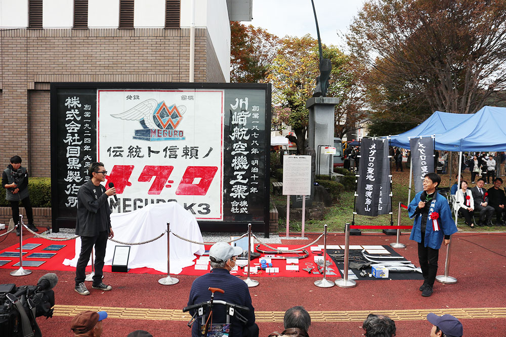 このイベントを通じて、市内ではメグロの歴史を初めて知る住民も増え、地域の誇りが再発見されつつあります。さらに、カワサキモータースに寄贈していただいた巨大なメグロ看板の前で『写真を撮りたい』というライダーが全国から訪れるようになり、フォトスポットとして認知されてきました。これまではツーリングの通過点でしたが、今では目的地となり、ライダーの皆さんがほぼ毎日訪れてくれています。